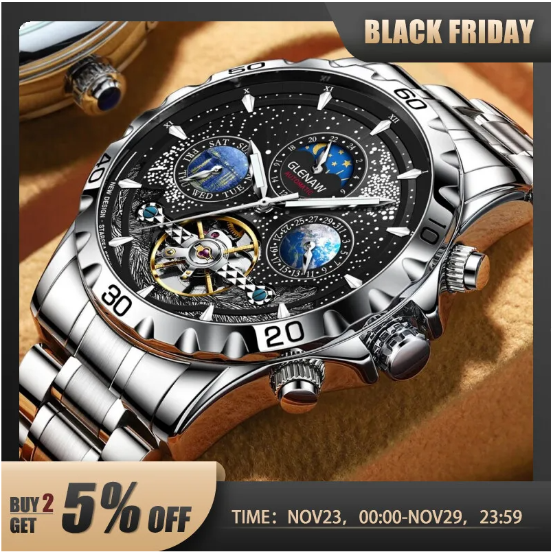 GLENAW 디자인 Mens 시계 최고 브랜드 럭셔리 패션 비즈니스 자동 시계 남자의 방수 기계 시계 몽터 옴므